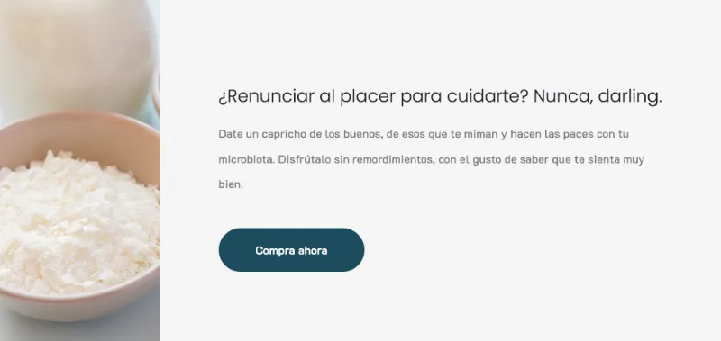 Su lenguaje combina ciencia y sensualidad cotidiana: “Tu microbiota también tiene sus días buenos y malos. Ayúdala a llevarse bien contigo.”