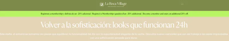 Su lenguaje está lleno de matices estéticos, ritmo pausado y un tono que combina lujo con cercanía: “Una jornada de compras al aire libre entre firmas de lujo, rodeada de arte y naturaleza.”